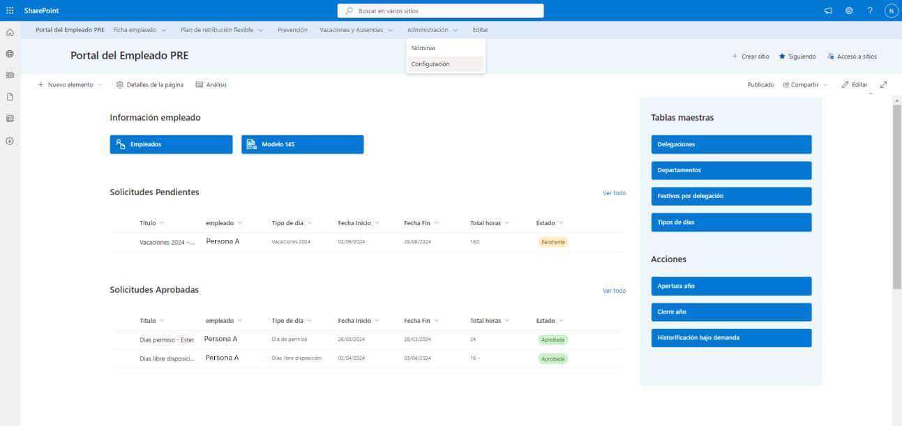 El Portal del Empleado es un sistema centralizado para la gestión integral de las personas trabajadoras que permite la visualización completa de la información, la automatización de procesos y flujos y canales de comunicación interna corporativa.